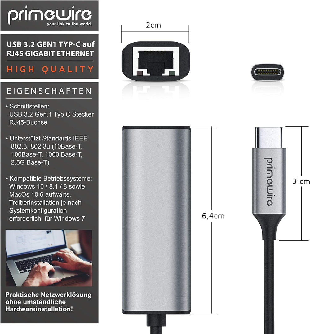 CSL - USB 3.2 Netzwerkadapter 2500 Mbps - USB C auf RJ45 Buchse - Gigabit Ethernet LAN Adapter – bis