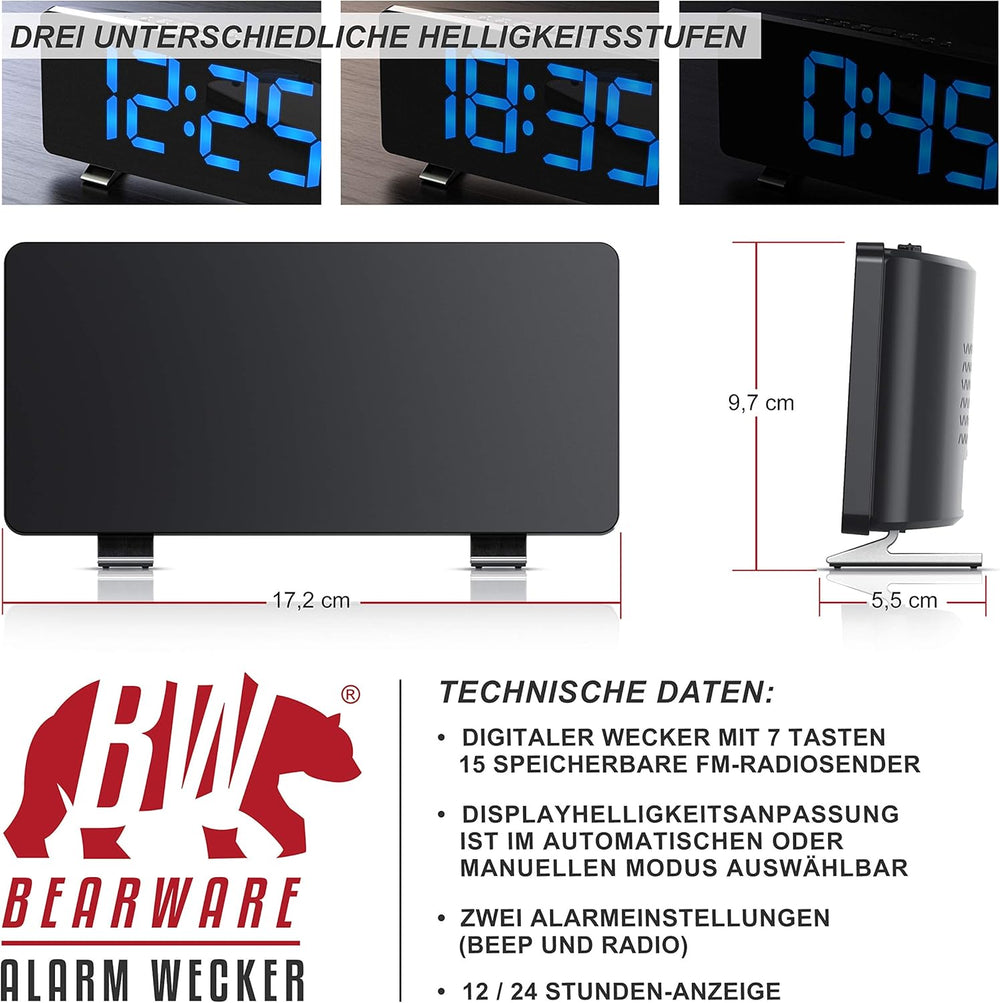 CSL - Radiowecker digital - FM Wecker - LED Display mit 3 Helligkeiten und Autodimmer - grosse Zahle