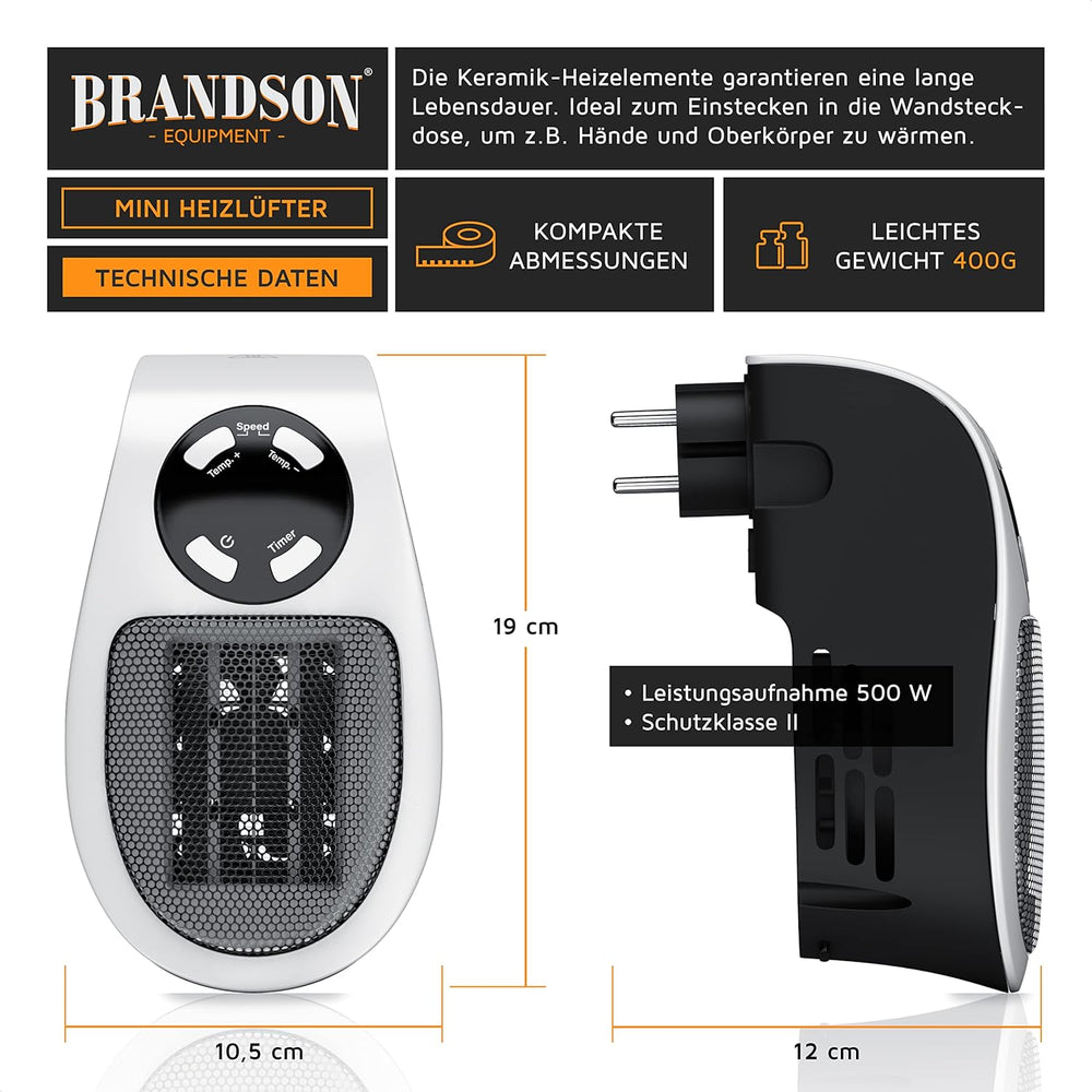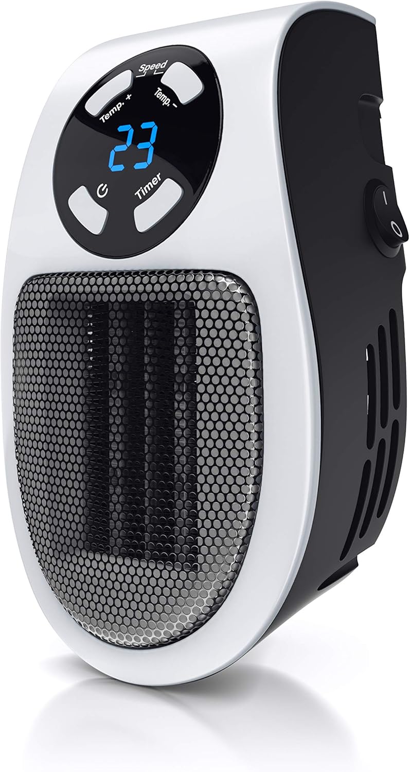CSL - Steckdosen Heizlüfter mit Fernbedienung, Mini Keramik Heizung mit Thermostat, Lüfter 500W, Tem