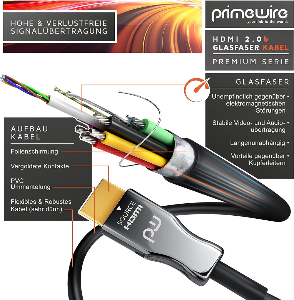 CSL - HDMI Kabel 2.0 b Glasfaser 30m - 4k 60Hz mit HDR - 3D - ARC - CEC – HDCP 2.2 - YUV 4 x 4 x 4 -