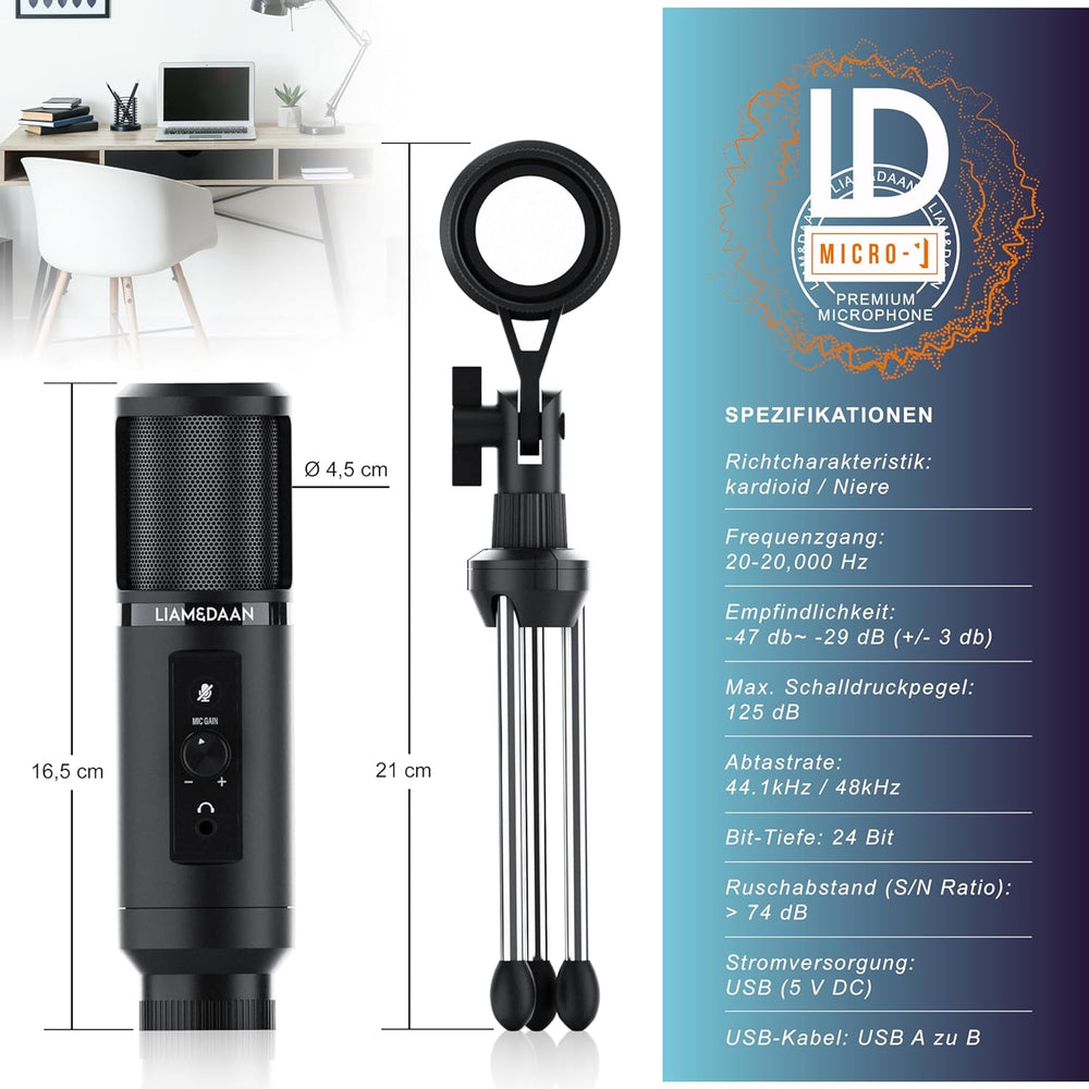 CSL - Kondensatormikrofon für PC, PS5, PS4 und Mac, PC Mikrofon mit Monitorfunktion, 192 kHz, 20 Hz