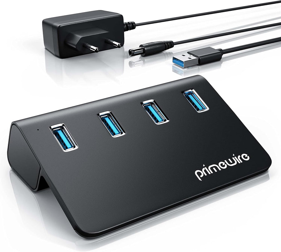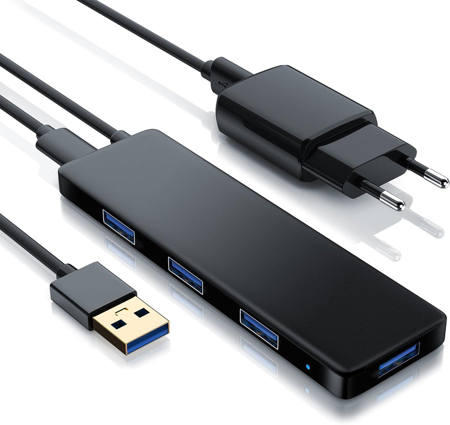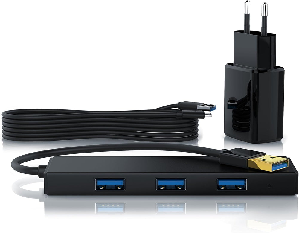 CSL - USB 3.0 Hub mit Netzteil - Ultra Slim 4-Port Verteiler - Datenhub für PC PS4 Notebook Netbook