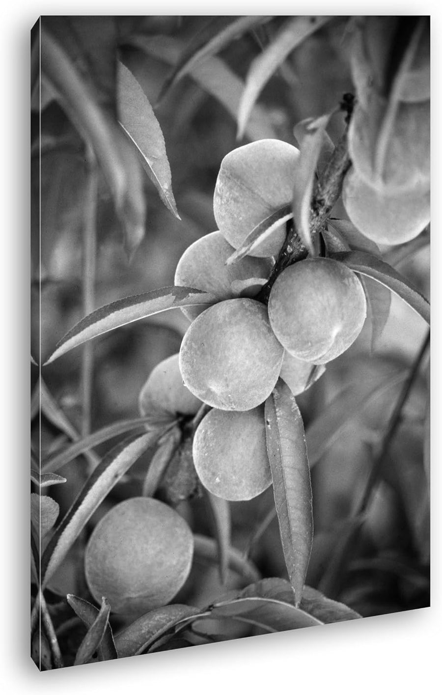 delikate Pfirsiche am Baum Effekt: Schwarz/Weiss Format: 100x70 als Leinwandbild, Motiv fertig gerah