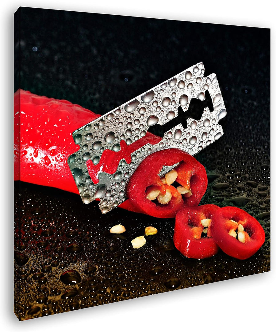 Dark extrem scharfe Peperoni im Format: 70x70 als Leinwandbild, Motiv fertig gerahmt auf Echtholzrah