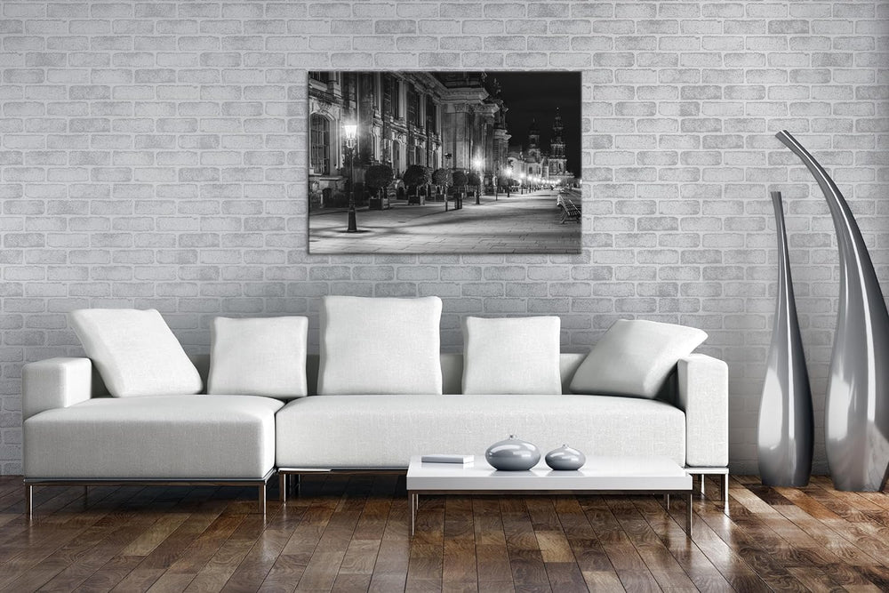 deyoli Abendstimmung am Elbufer in Dresden Format:90x60 cm Effekt: Schwarz/Weiss als Leinwandbild, M