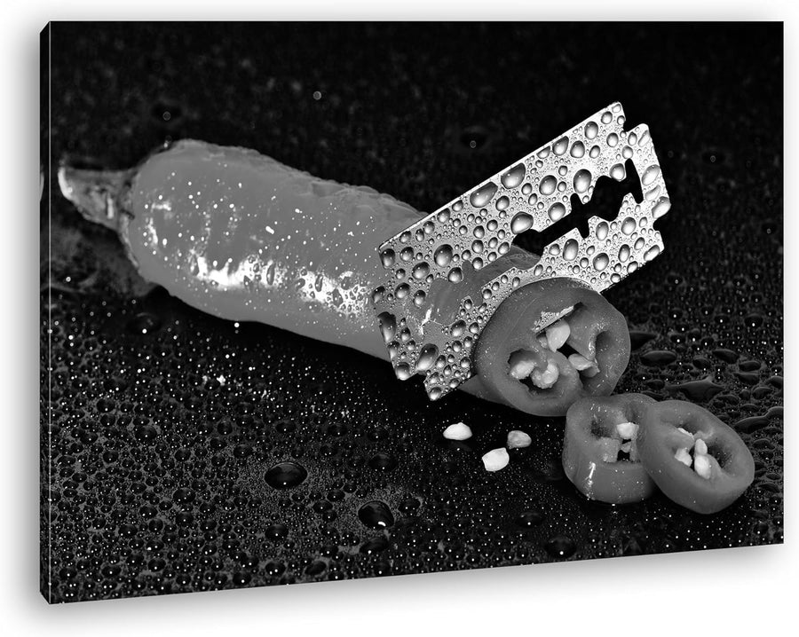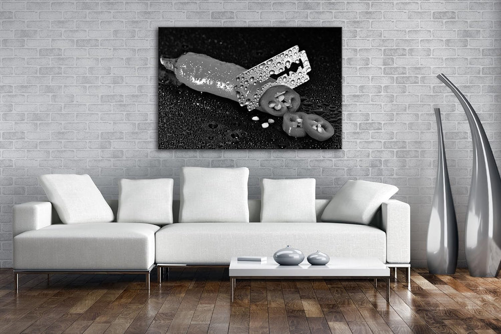 Dark extrem scharfe Peperoni Effekt: Schwarz/Weiss im Format: 80x60 als Leinwandbild, Motiv fertig g
