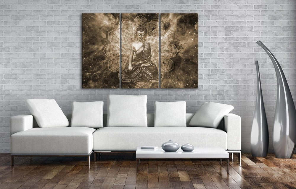 deyoli Abbild Buddhas im Universum Format: 3-teilig 120x80 Effekt: Sepia als Leinwand, Motiv fertig