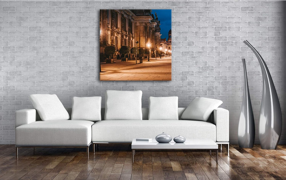 deyoli Abendstimmung am Elbufer in Dresden Format: 70x70 als Leinwand, Motiv fertig gerahmt auf Echt