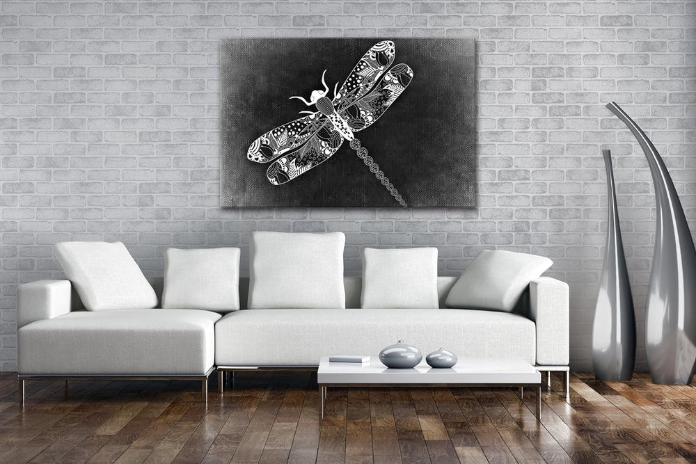 deyoli Abstrakte Libelle Effekt: Schwarz/Weiss Format: 80x60 als Leinwandbild, Motiv fertig gerahmt