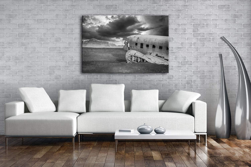 deyoli abgestürztes Flugzeug Format: 60x40 Effekt: Schwarz&Weiss als Leinwandbild, Motiv fertig gera