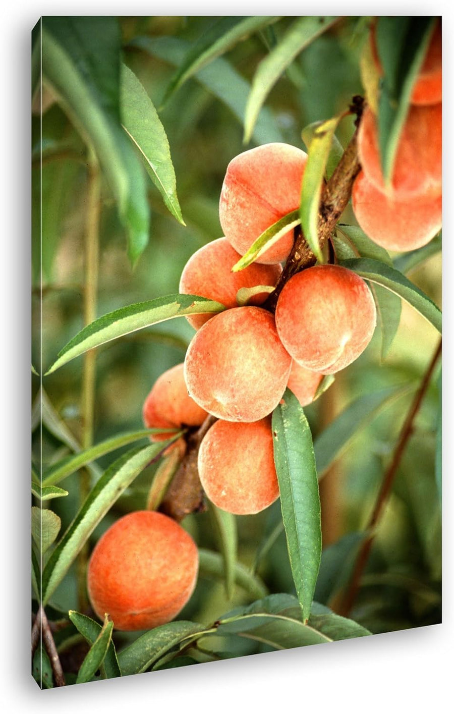 delikate Pfirsiche am Baum Format: 80x60 als Leinwandbild, Motiv fertig gerahmt auf Echtholzrahmen,