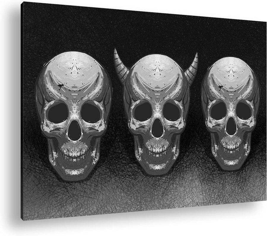 demonische Schädel Format: 80x60 Effekt: Schwarz&Weiss als Leinwandbild, Motiv fertig gerahmt auf Ec