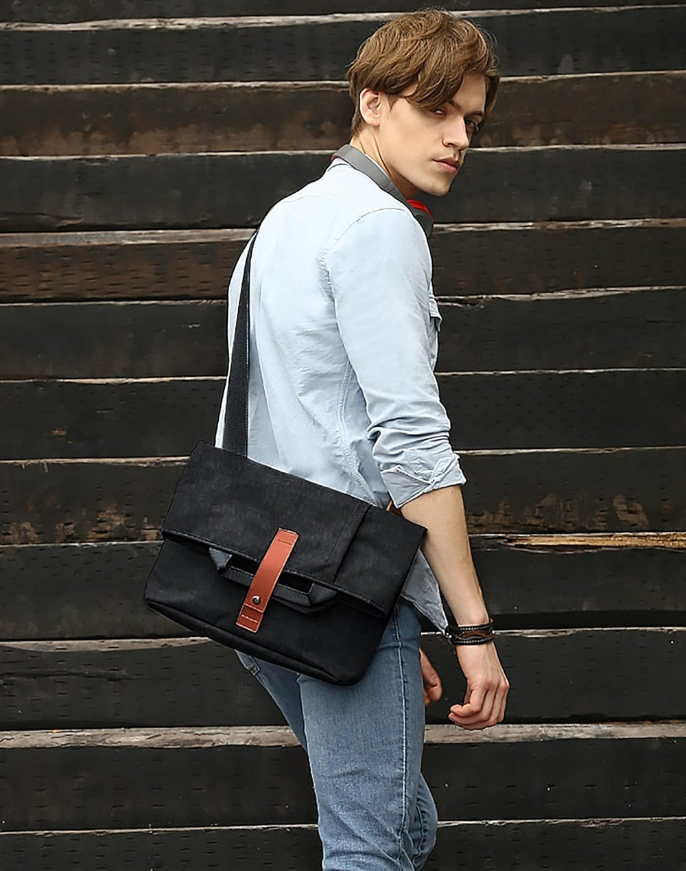 DORRISO Mode Umhängetasche Herren Schultertasche Canvas Schultertaschen für 14 Zoll Laptop Kuriertas