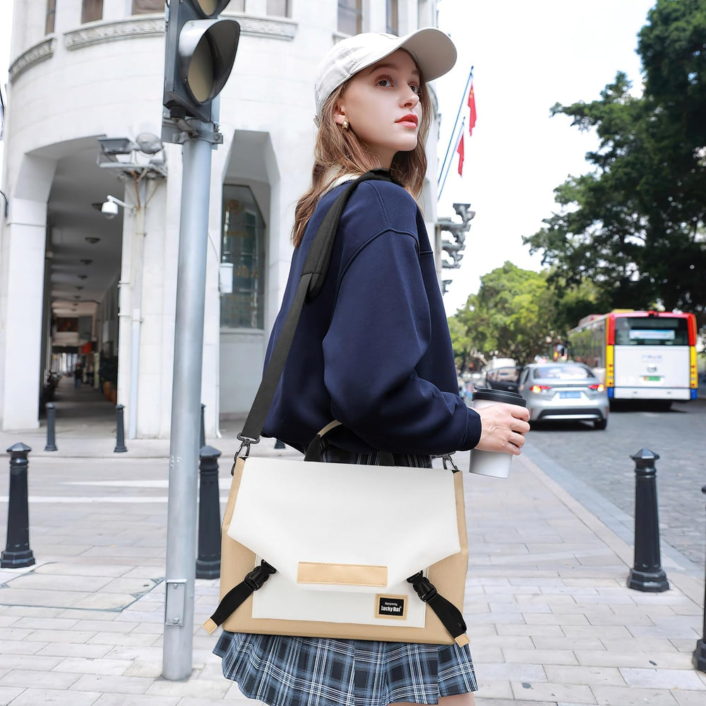 DORRISO Mode Umhängetasche Damen Herren Casual 14 Zoll Laptoptasche mit Gepäckgurt Arbeitstasche für