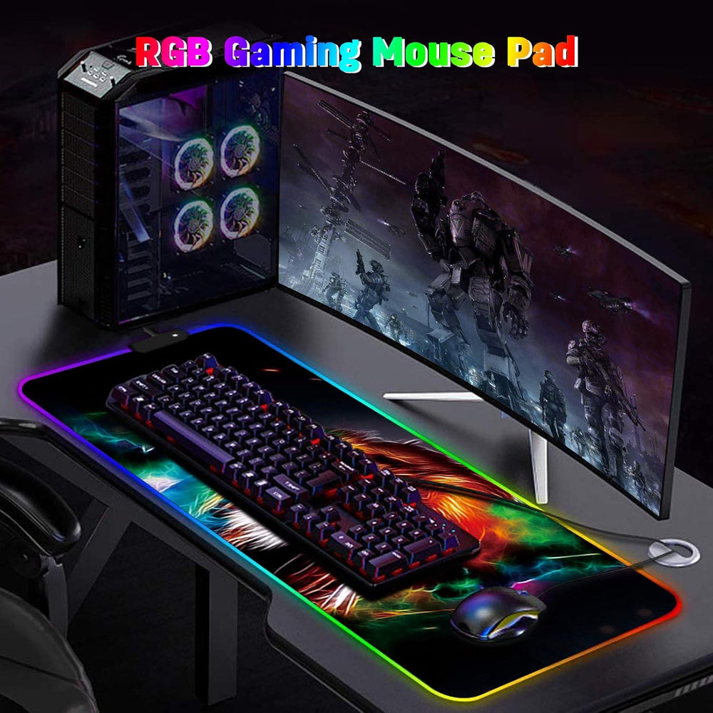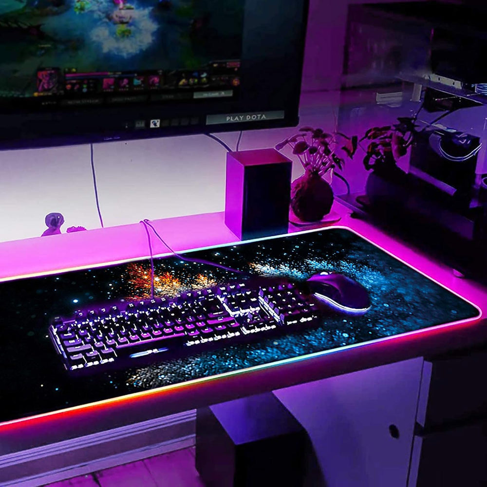 DORRISO Neu Gaming Mauspad Grosses RGB 900x400x3 mm XXL LED Schreibtischunterlage Wasserdicht Anti R
