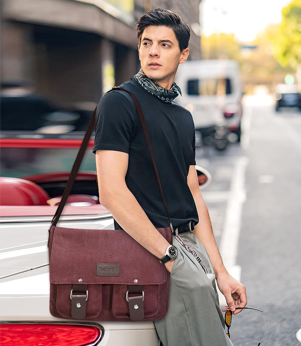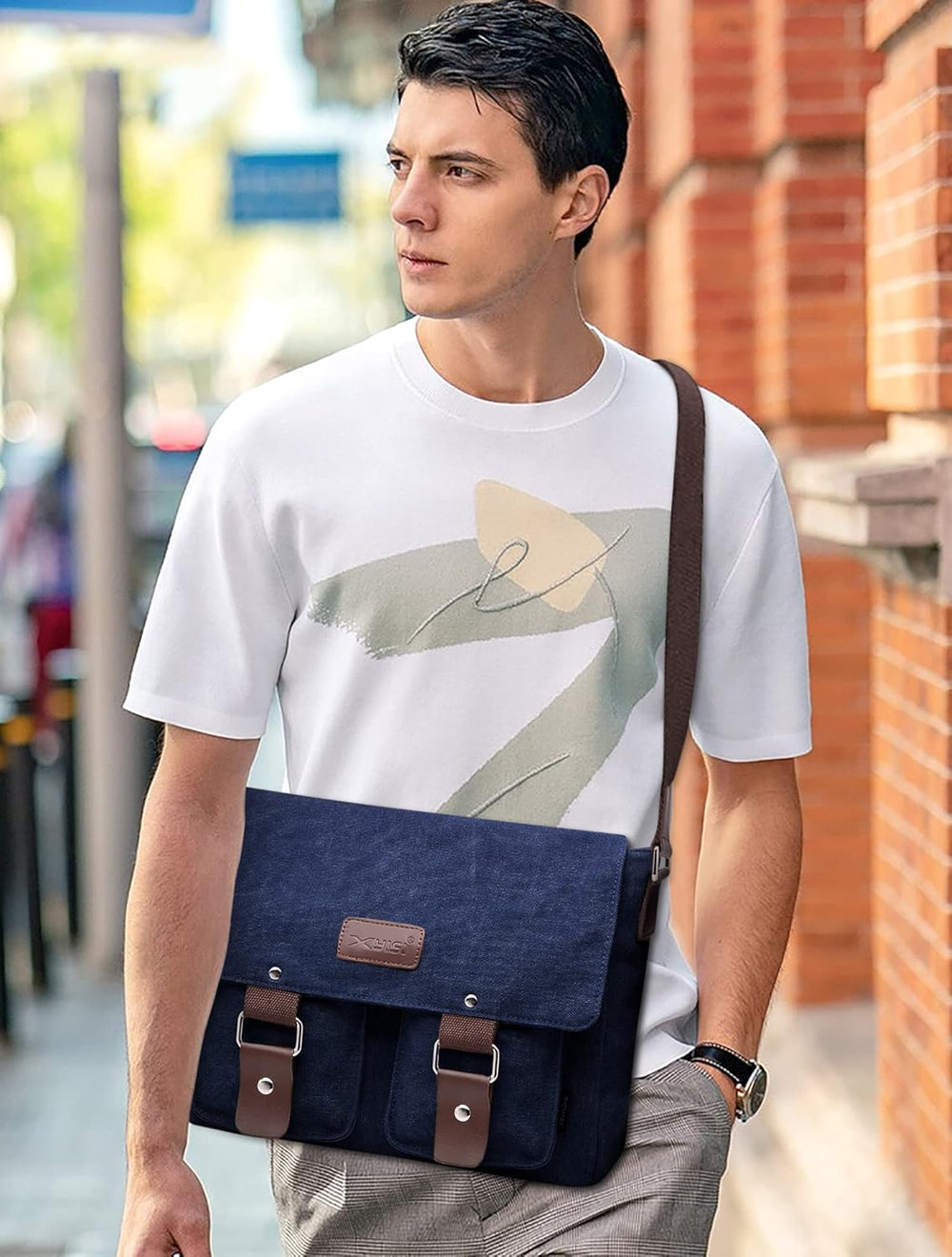 DORRISO Mode Umhängetasche Herren Schultertasche Leinwand Schultertaschen für 13.3 Zoll Laptop Kurie