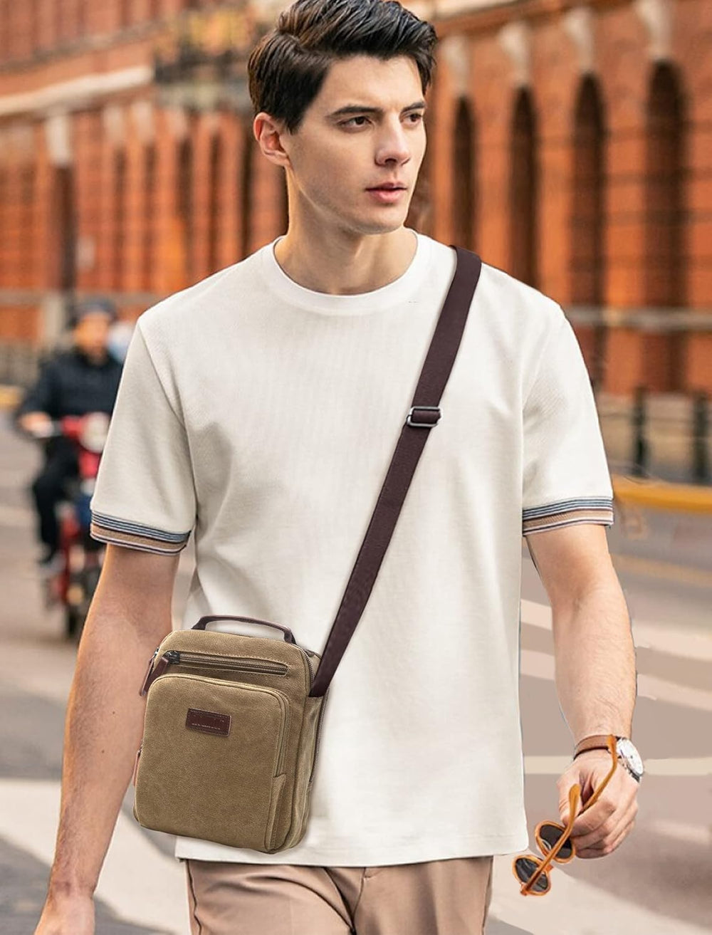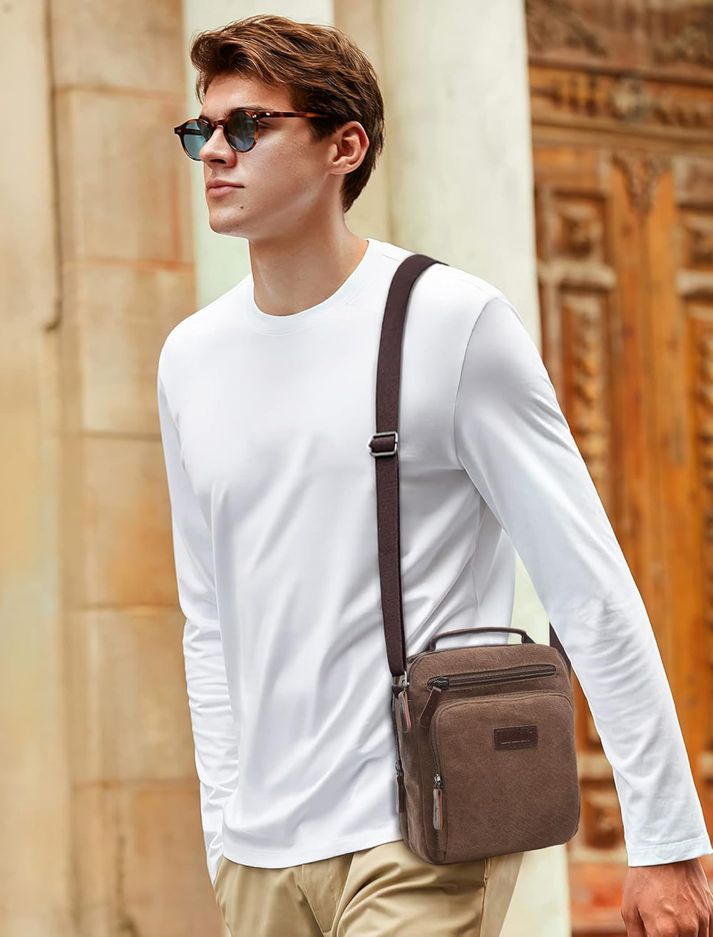 DORRISO Mode Herren Umhängetasche Leinwand Schultertasche Klein Schultertaschen Leicht Kuriertasche