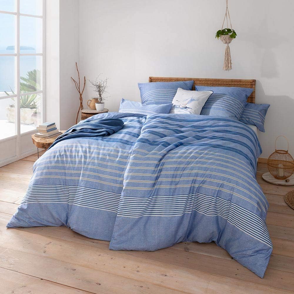 ESTELLA Mako-Batist Bettwäsche Niels bleu 1 Bettbezug 200 x 220 cm + 2 Kissenbezüge 80 x 80 cm, 1 Be