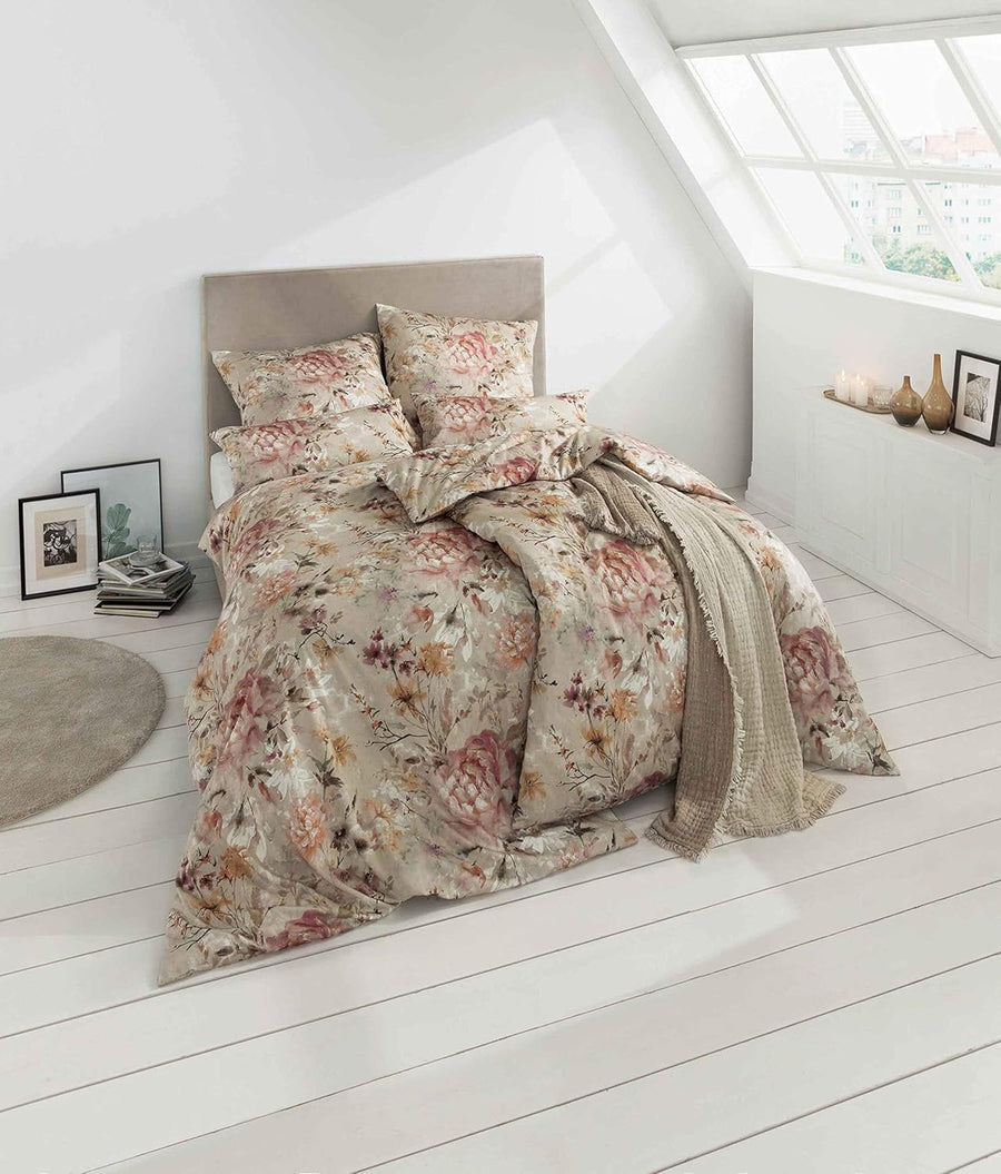 ESTELLA Mako-Satin Bettwäsche Lily Multicolor 1 Bettbezug 135 x 200 cm + 1 Kissenbezug 80 x 80 cm, 1