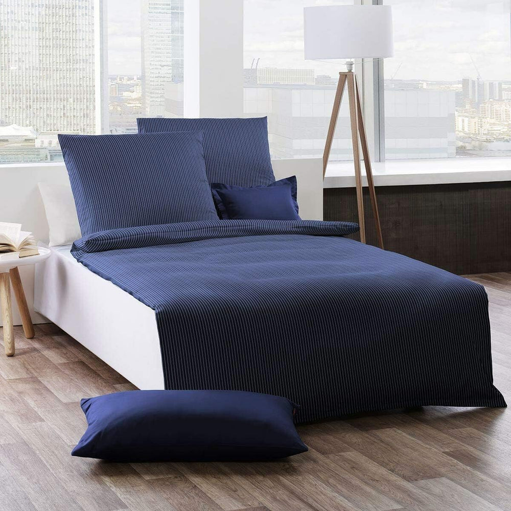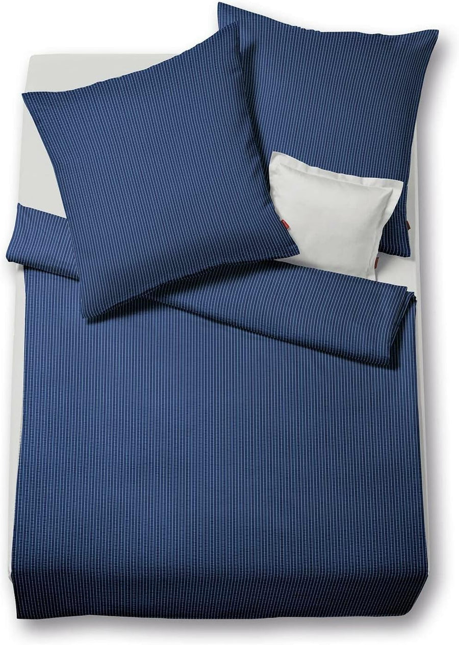 fleuresse Gewebte Seersucker Bettwäsche Rio Nadelstreifen 443700 Marine, 1 Bettbezug 135 x 200 cm +