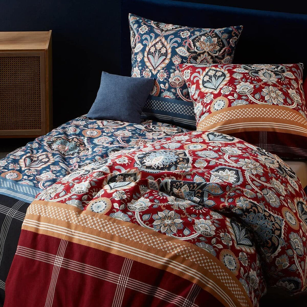 fleuresse Feinbiber Bettwäsche Aspen Ornament Denim 1 Bettbezug 135 x 200 cm + 1 Kissenbezug 80 x 80