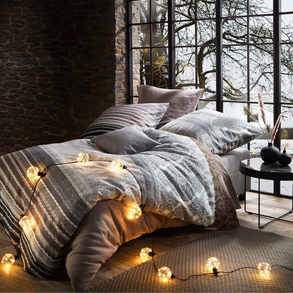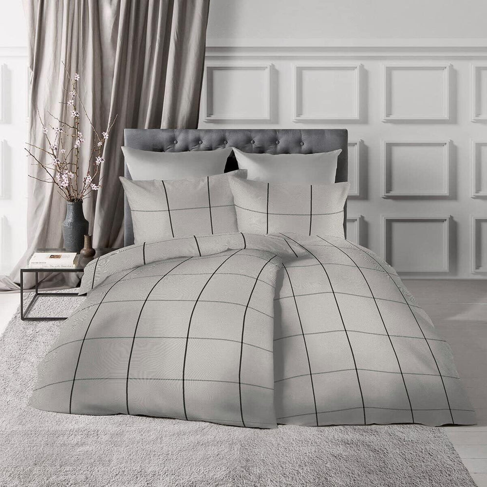 fleuresse gewebte Edelflanell Bettwäsche Lech Bootle steingrau 1 Bettbezug 240 x 220 cm + 2 Kissenbe