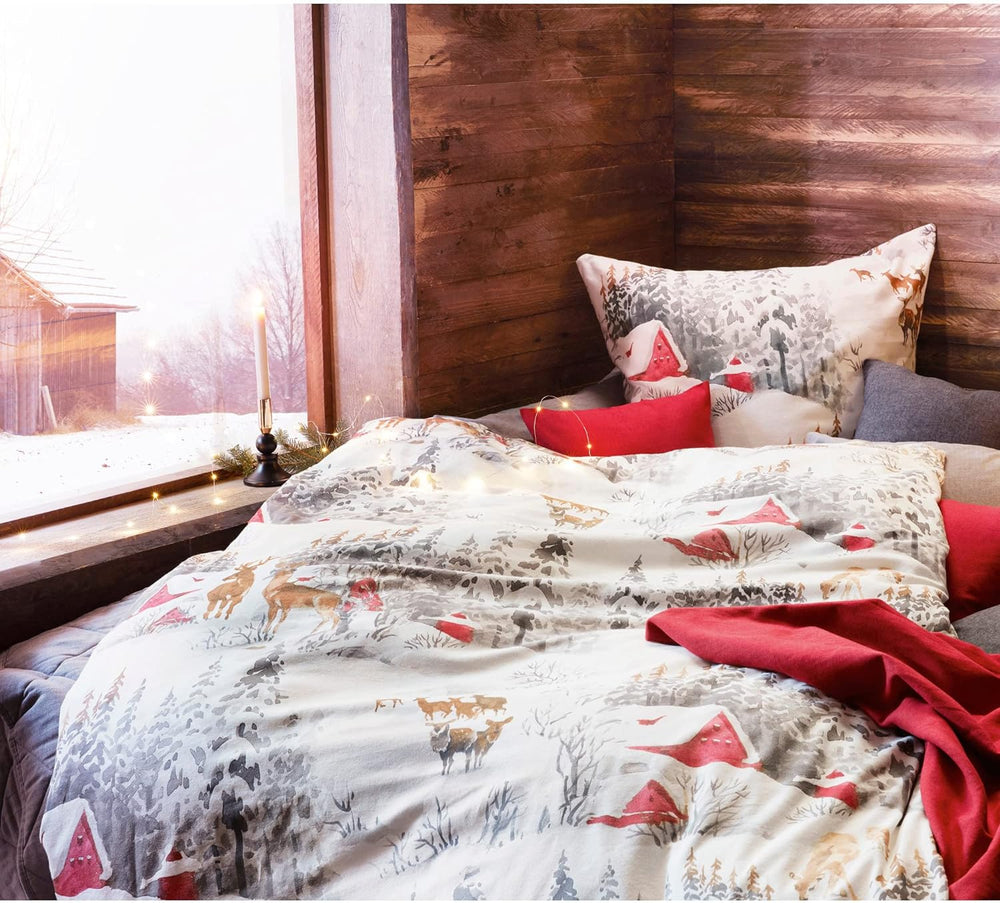 fleuresse Feinbiber Bettwäsche Aspen Rehe Silbergrau 1 Bettbezug 135 x 200 cm + 1 Kissenbezug 80 x 8
