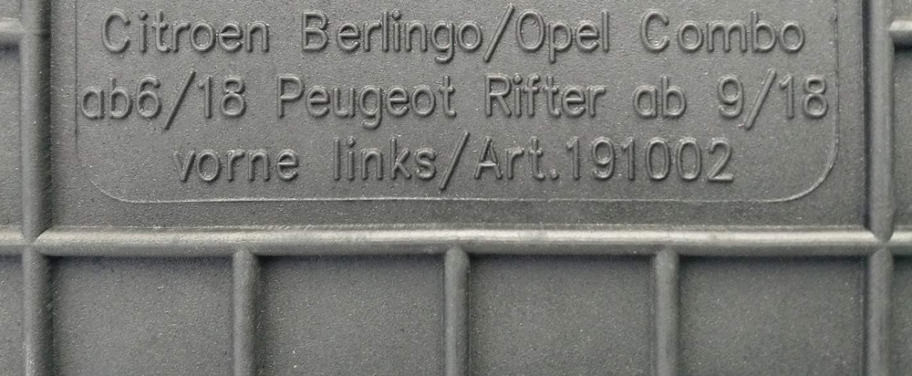 Fussmatten Vorne, Hinten + Tunnel Matte 5er Set für Peugeot Rifter seit 2018 Gummi Gummimatten Vorne