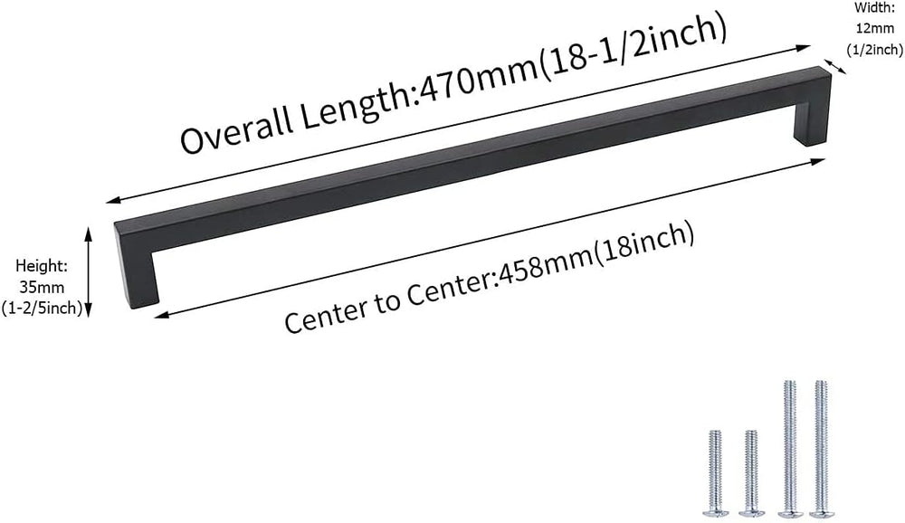 goldenwarm 5x 458mm Schwarz Möbelgriff Edelstahl Stangengriff Küchengriff LSJ12BK458 Griffe Schwarz
