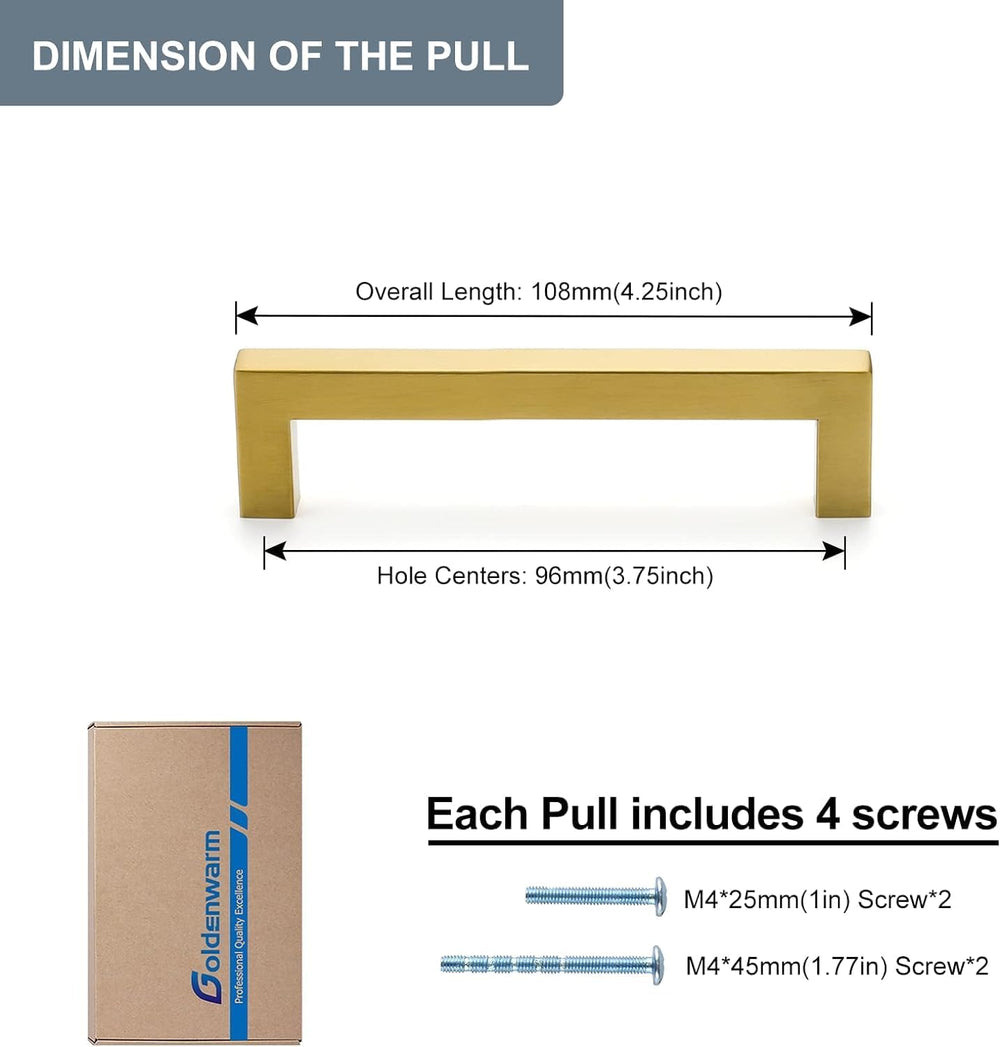 goldenwarm LS1212GD Möbelknöpfe, gebürstetes Messing, quadratisch, goldfarben, für Küchenschränke, S