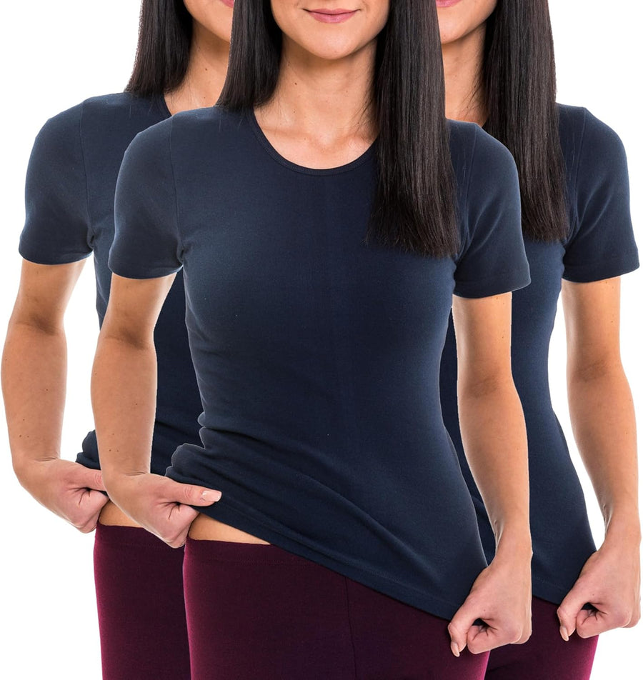 HERMKO 1800 3er Pack Damen Kurzarm Unterhemd aus 100% Bio-Baumwolle S Marine, S Marine