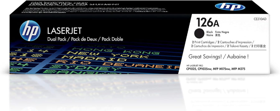 HP 126A 2er-Pack (CE310AD) Schwarz Original Toner für HP Color Laserjet Pro CP1025, M175, TopShot La