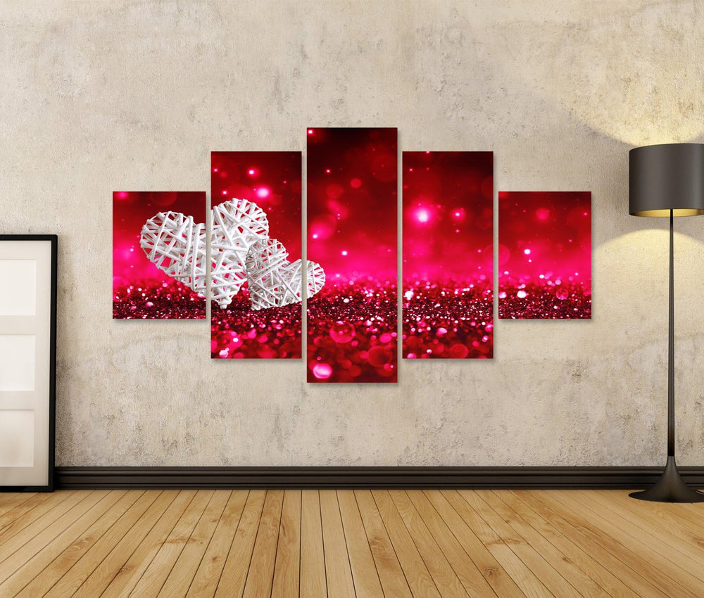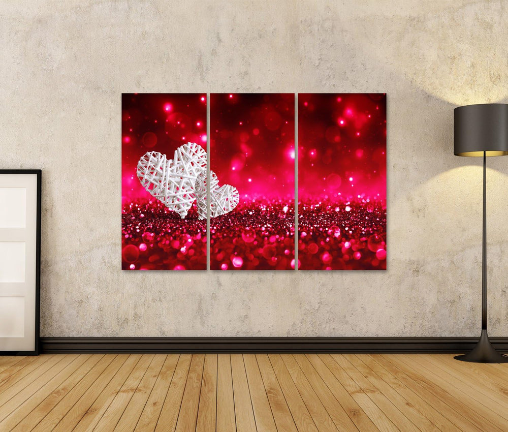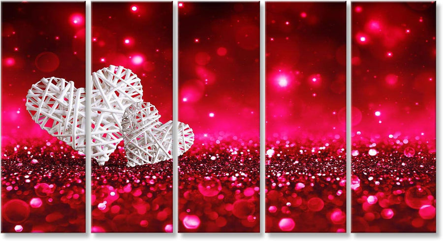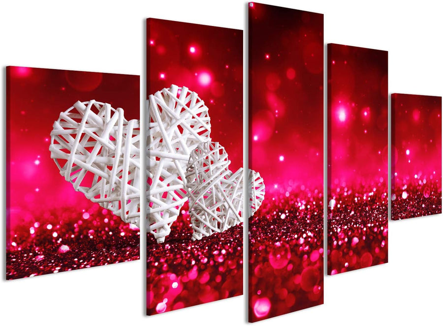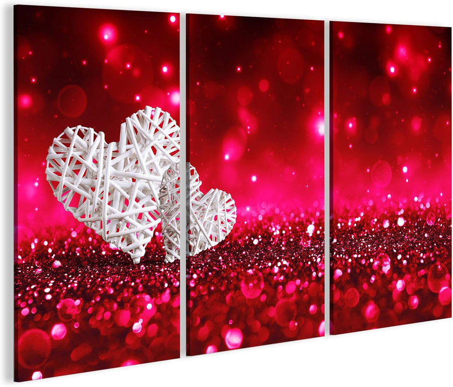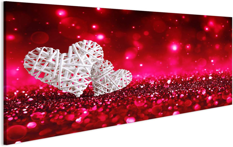 islandburner, Bild auf Leinwand Zwei Weidenherzen auf rotem, funkelndem Glitzer Wandbild Poster Lein