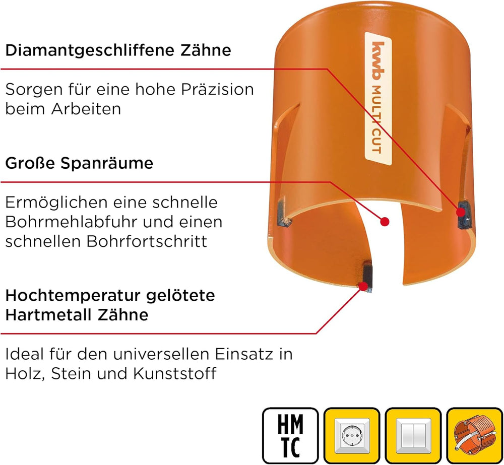 kwb Mehrkranzlochsäge aus Wolframstahl Ø 68, 83 und 100 mm mit guter Schnittleistung, langer Lebensd