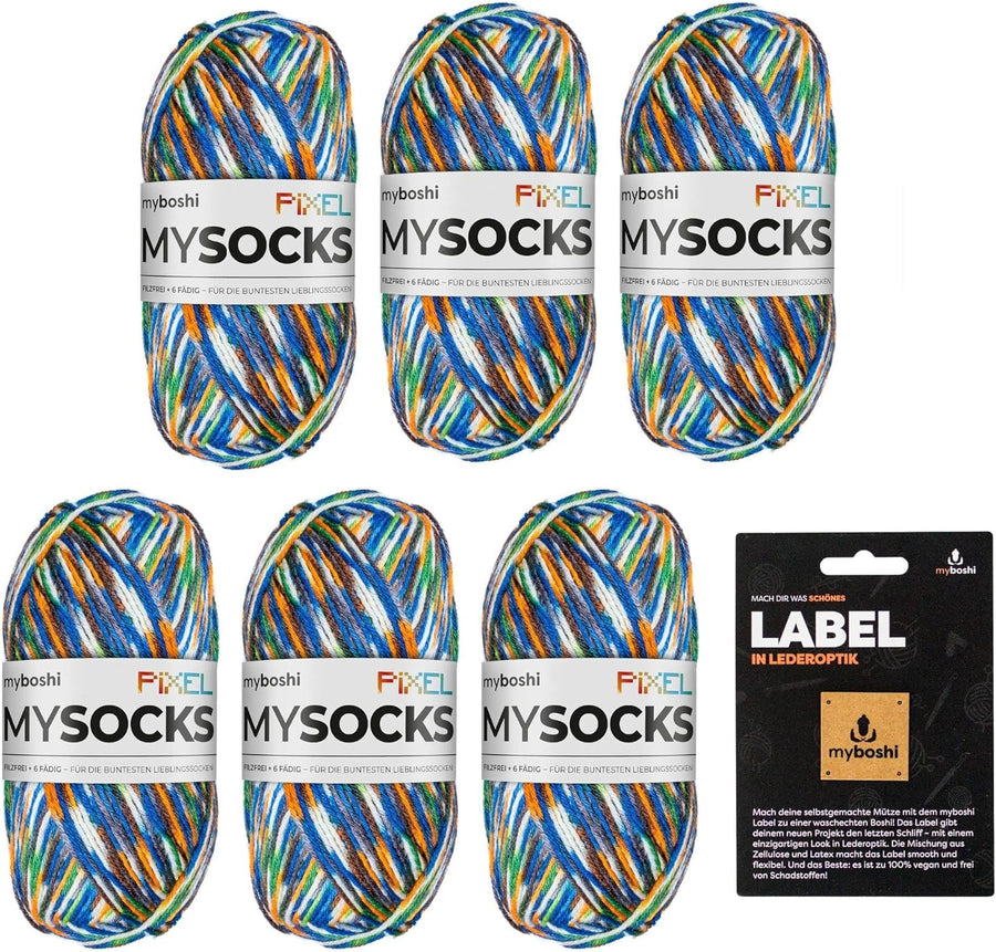 myboshi mysocks Pixel, 6-fädige Sockenwolle, strapazierfähig, Garn, inkl. original Label in Lederopt