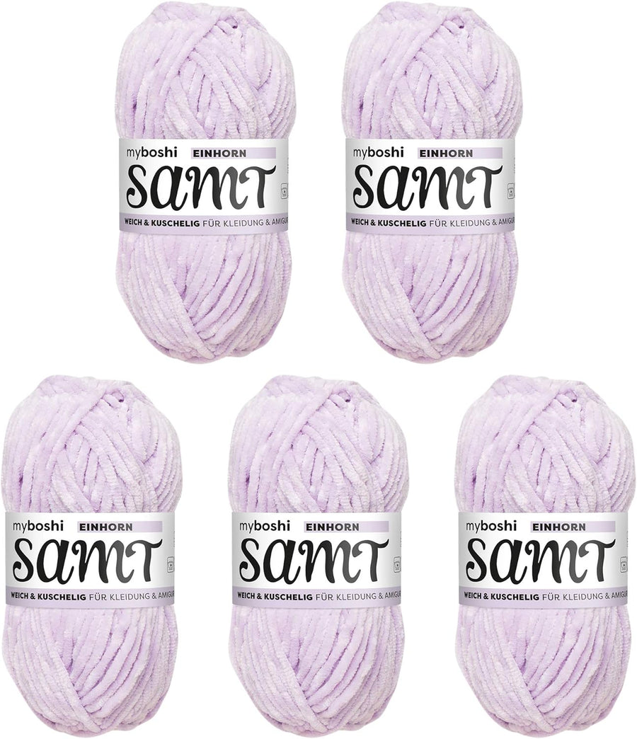 myboshi Samt, 100% Chenille-Garn, Flieder - Einhorn, 100g, 100m, 5 Knäuel, Wolle zum Häkeln und Stri