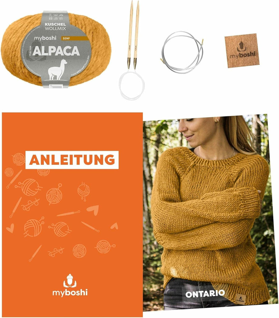 myboshi Strickset Raglanpullover Ontario, Strickset für Anfänger, inkl. Alpaca Wolle, Nadel und Anle