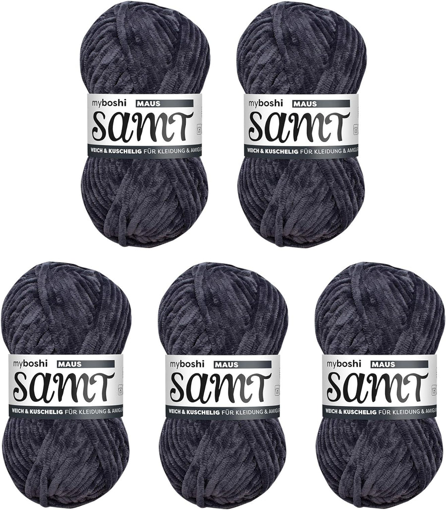 myboshi Samt, 100% Chenille-Garn, Blau - Elefant, 100g, 100m, 5 Knäuel, Wolle zum Häkeln und Stricke