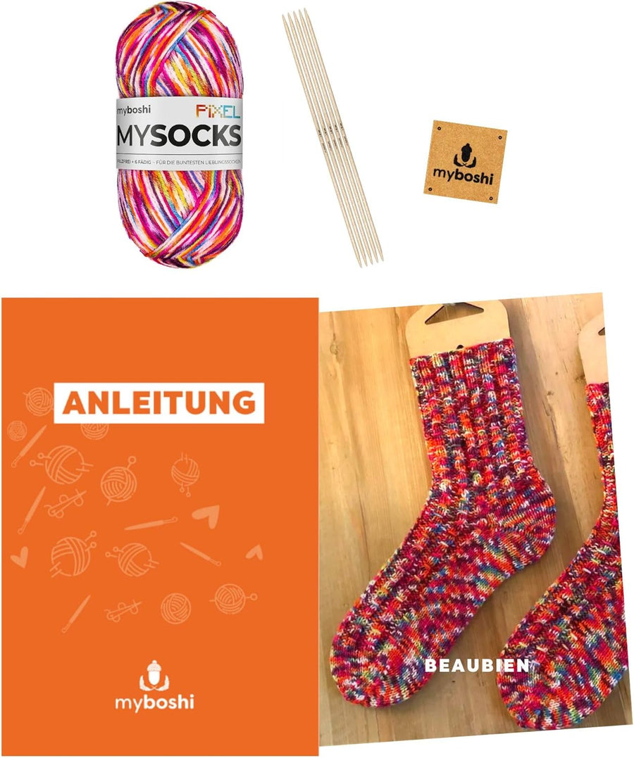myboshi Strickset Socken Beaubien, inkl. mysocks Pixel Sockenwolle, Nadelspiel, Anleitung Label in L