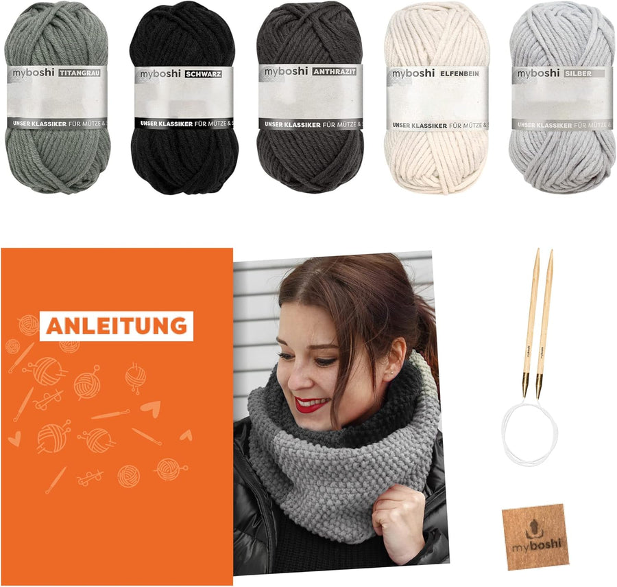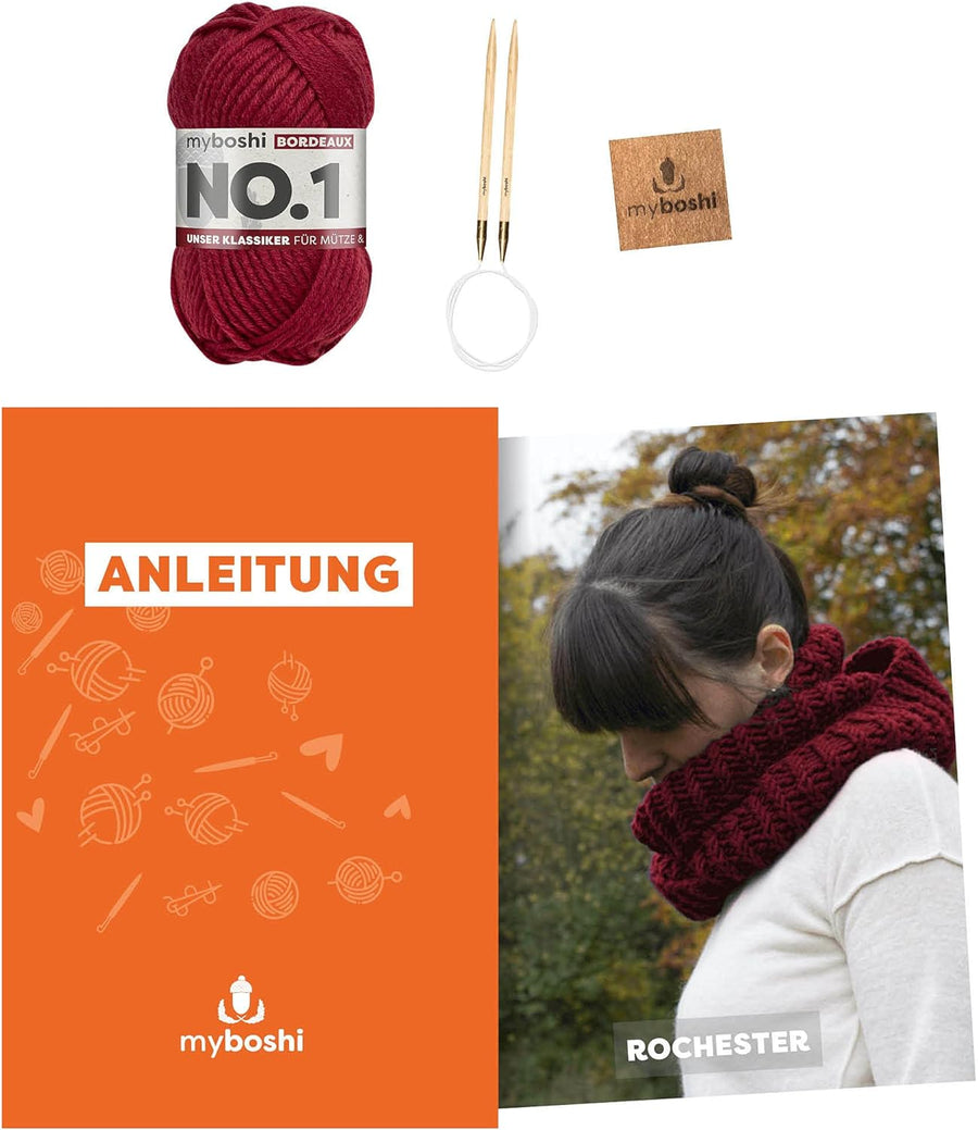 myboshi Strickset Rundschal Rochester, inkl. No.1 Wolle, Nadel und Anleitung, für Mützen und Schals,