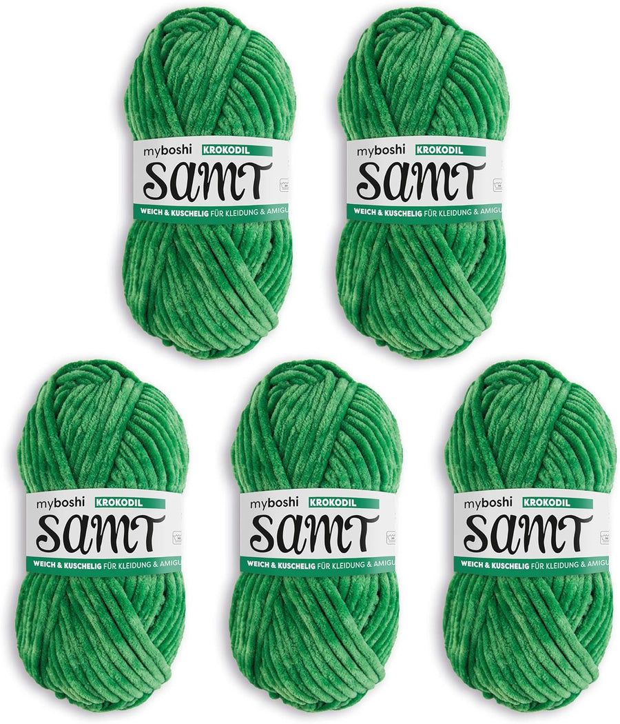 myboshi Samt, 100% Chenille-Garn, Grün - Krokodil, 100g, 100m, 5 Knäuel, Wolle zum Häkeln und Strick