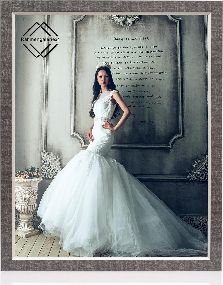 rahmengalerie24 Bilderrahmen 40x80 cm New Rio Rahmen grau Holz Acrylglas ohne Passepartout Portraitr