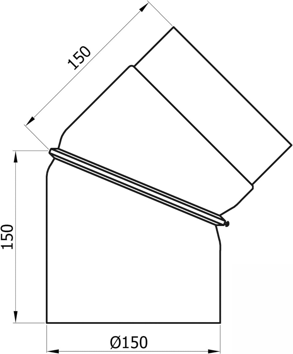 raik SH133-150-sw Raik Rauchrohrbogen/Ofenrohr 150mm - 0° - 45° ohne Reinigungsöffnung