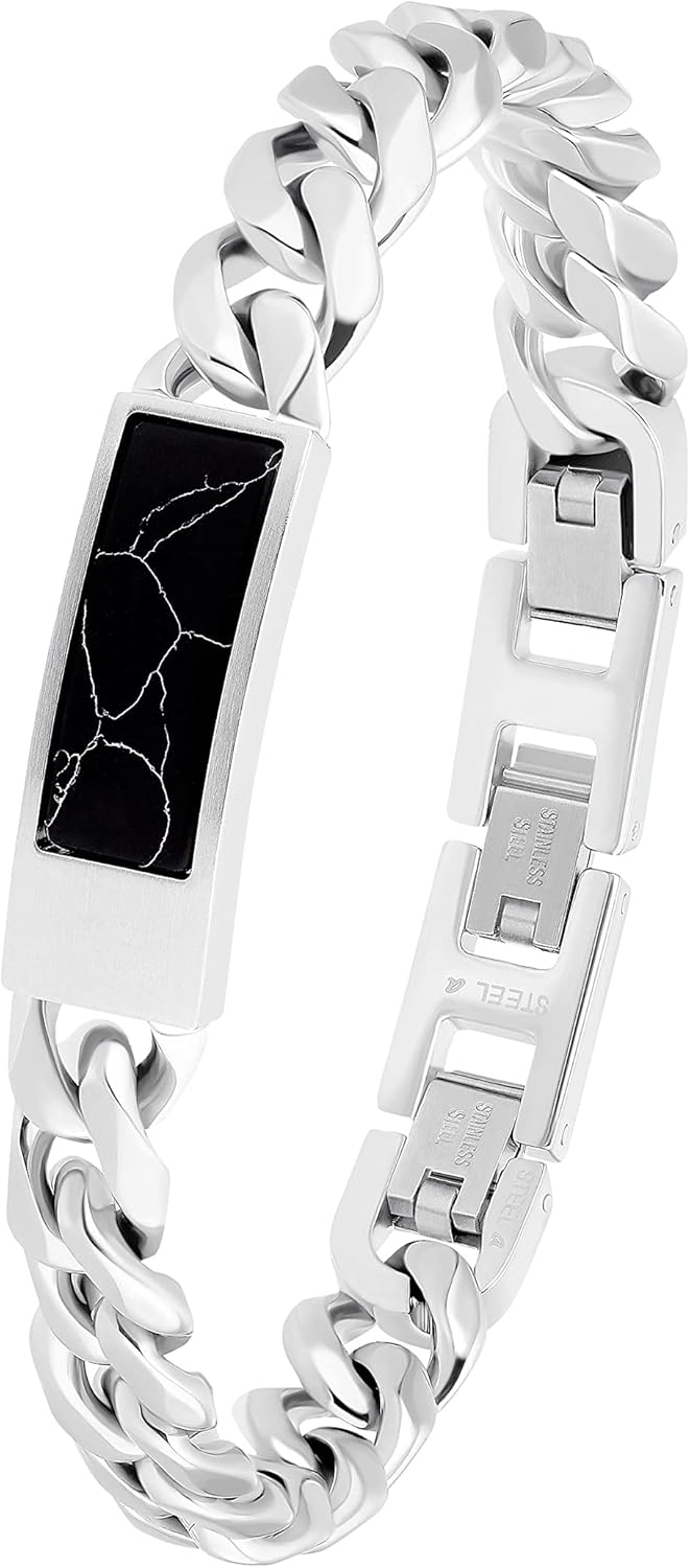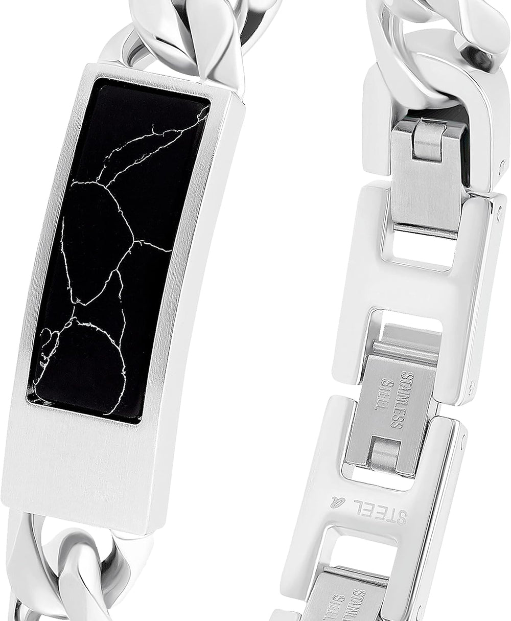 s.Oliver Armband Edelstahl Herren Armschmuck, mit Schmuckstein synth., 19+1,5+1,5 cm, Schwarz, Kommt