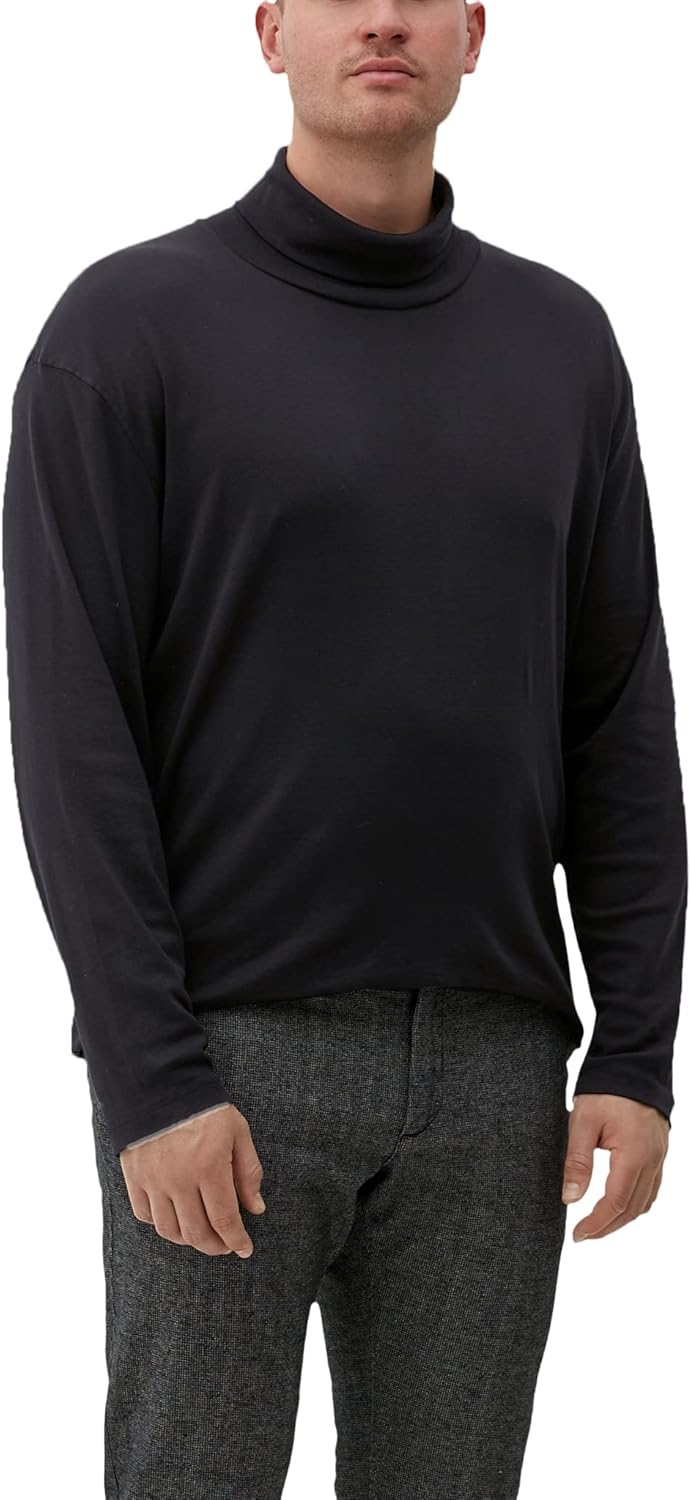 s.Oliver Big Size Herren Geripptes Longsleeve mit Turtleneck XXL Grosse Grössen Schwarz, XXL Grosse