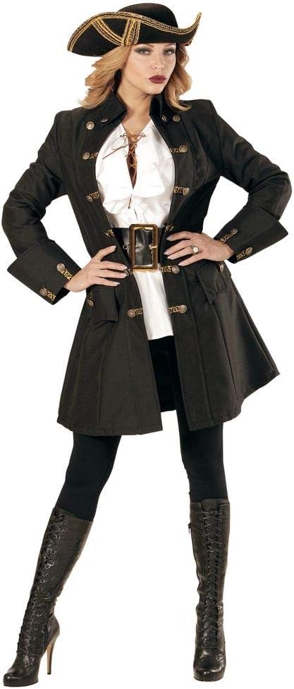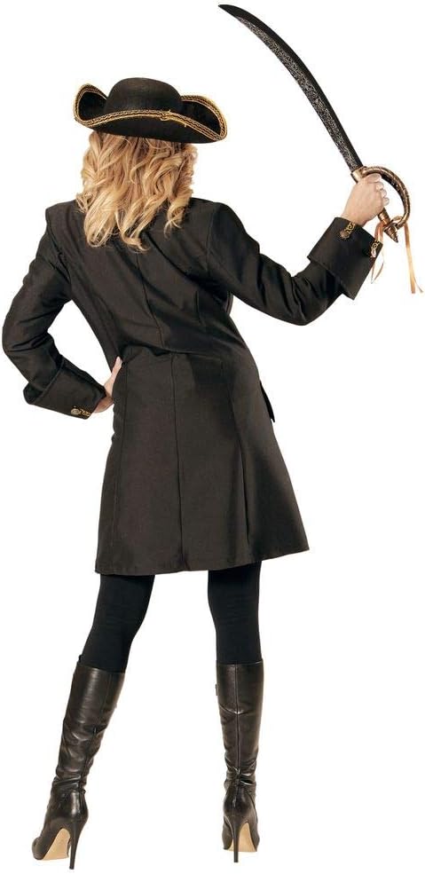 shoperama Schwarzer Damen-Mantel mit goldenen Knöpfen für Piratin Fluch der Karibik Kostüm Seeräuber