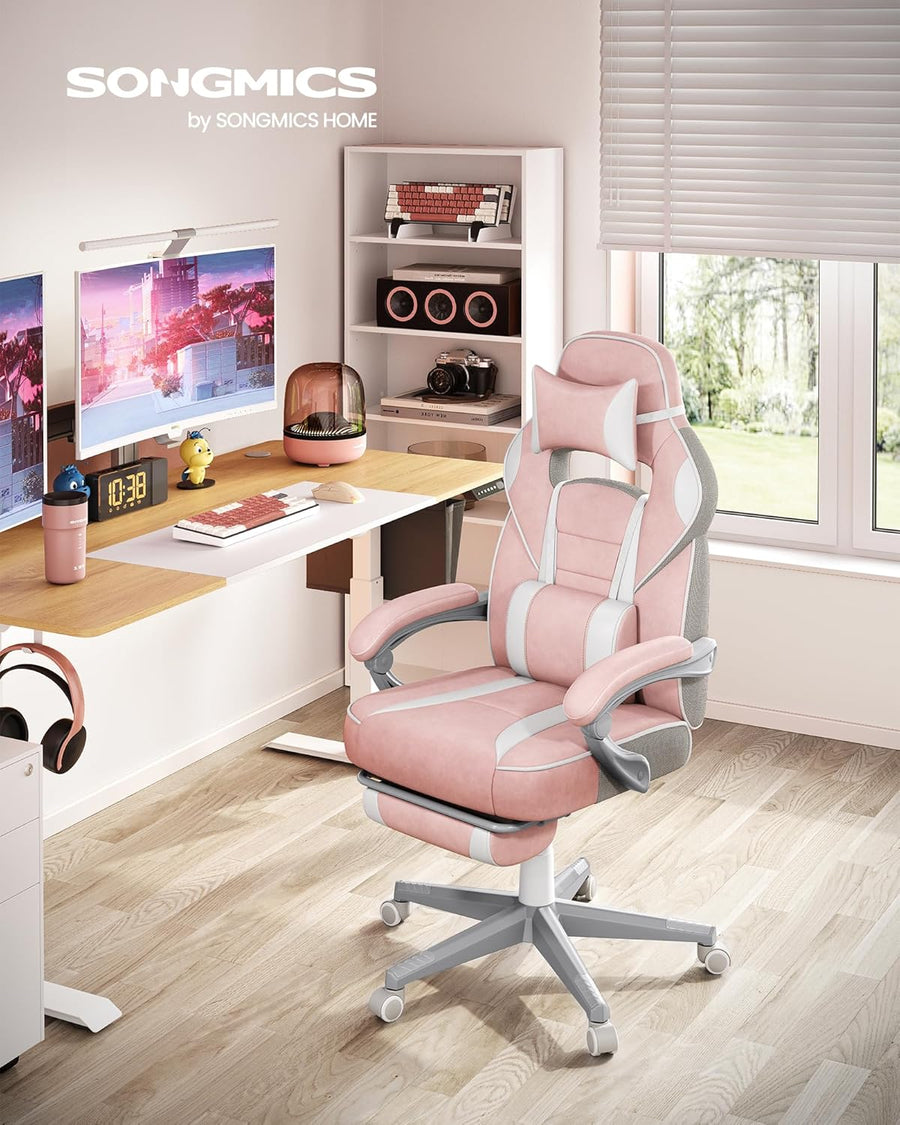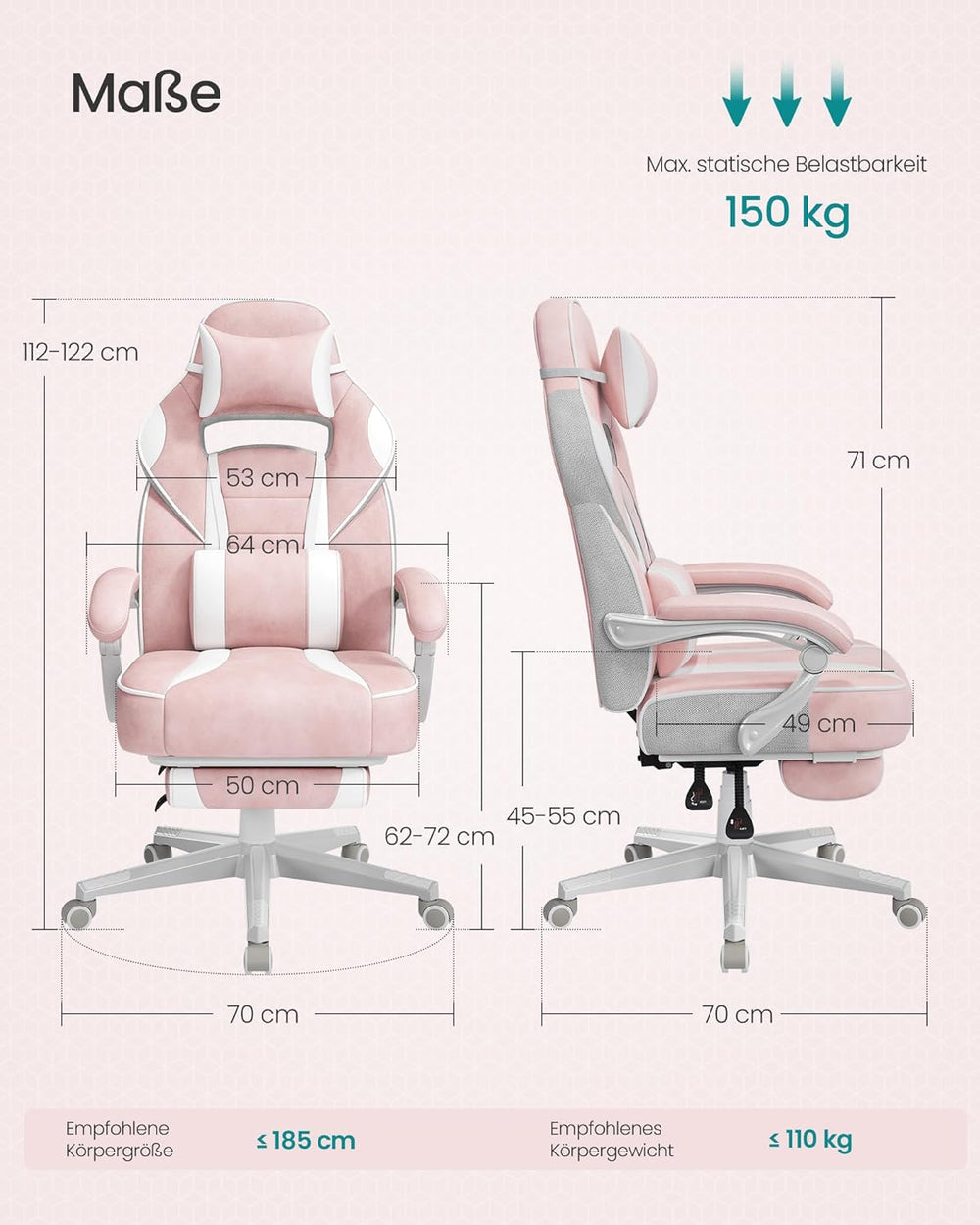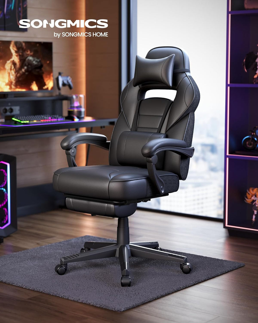 SONGMICS Bürostuhl, Schreibtischstuhl, ausziehbare Fussstütze, Kopfkissen, Lendenkissen, höhenverste
