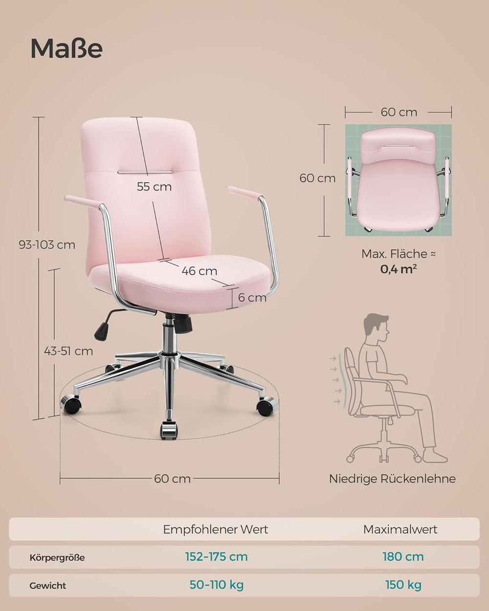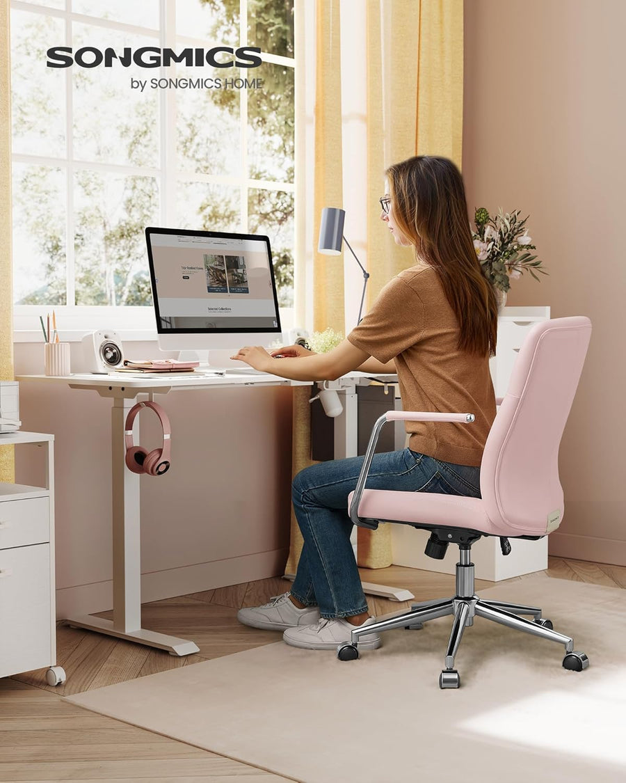SONGMICS Bürostuhl, Drehstuhl mit Samtbezug, Schaumstoffpolsterung, höhenverstellbar, für Arbeitszim