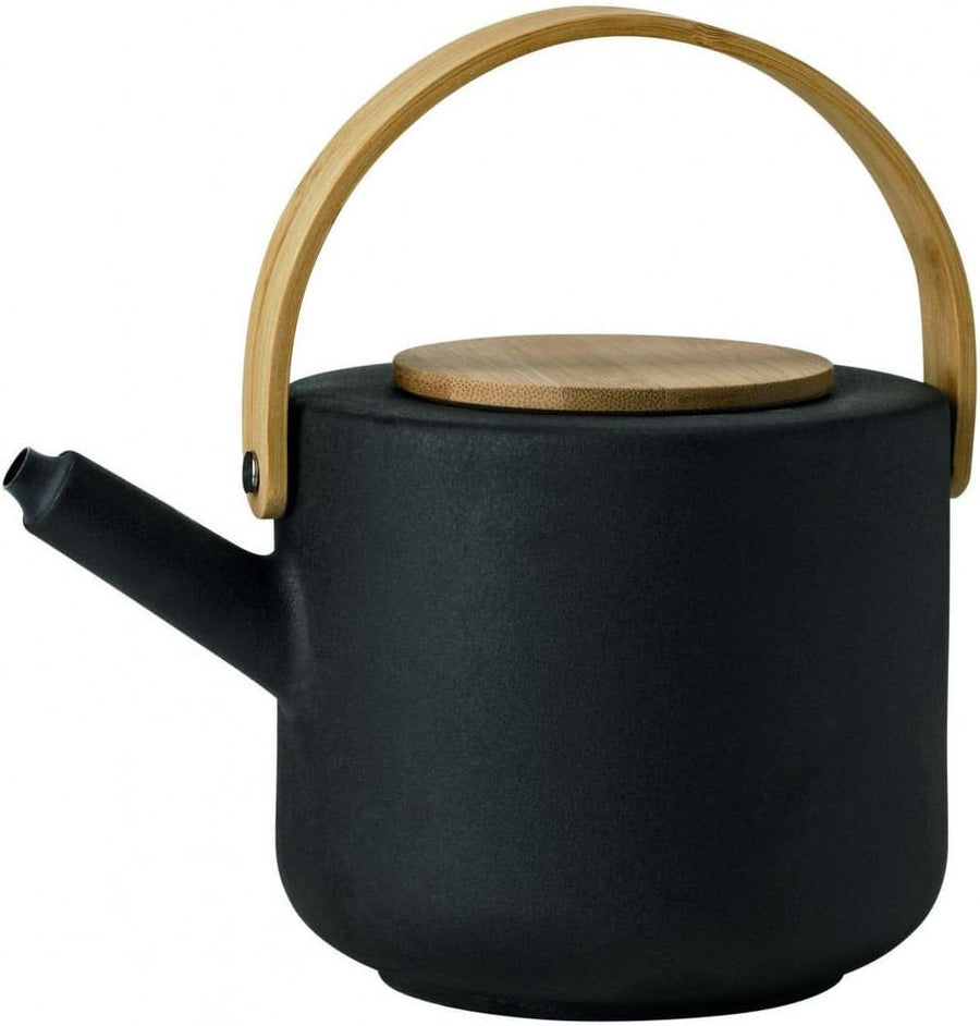 Stelton Teekanne Theo - Rustikale Steingut-Kanne, Deckel & Griff aus Bambus - Modernes skandinavisch