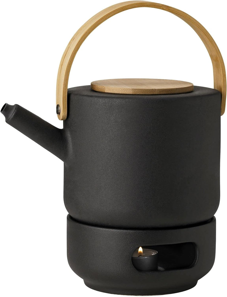 Stelton Theo Set Teekanne 1,25 Liter und Stövchen aus Steingut schwarz